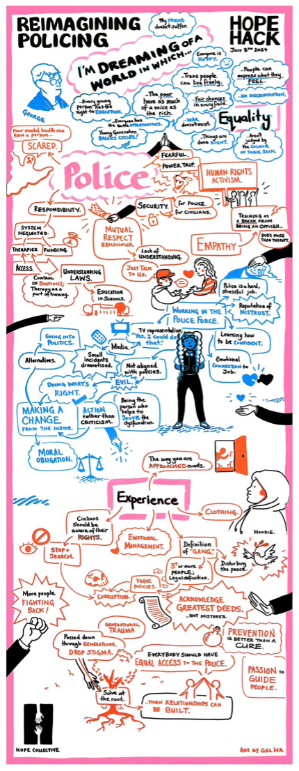 On July 8th, young people across the VRUs came together in Coventry to discuss the future of policing at the 33rd Hope Hack. We began the week with a new government and added to the momentum with a day to reflect and reimagine the current system.
